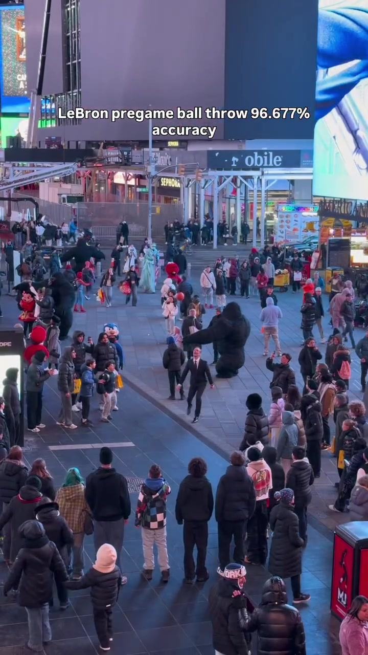 >风靡一时!网友晒有人开始在街头模仿詹姆斯的赛前扔球仪式