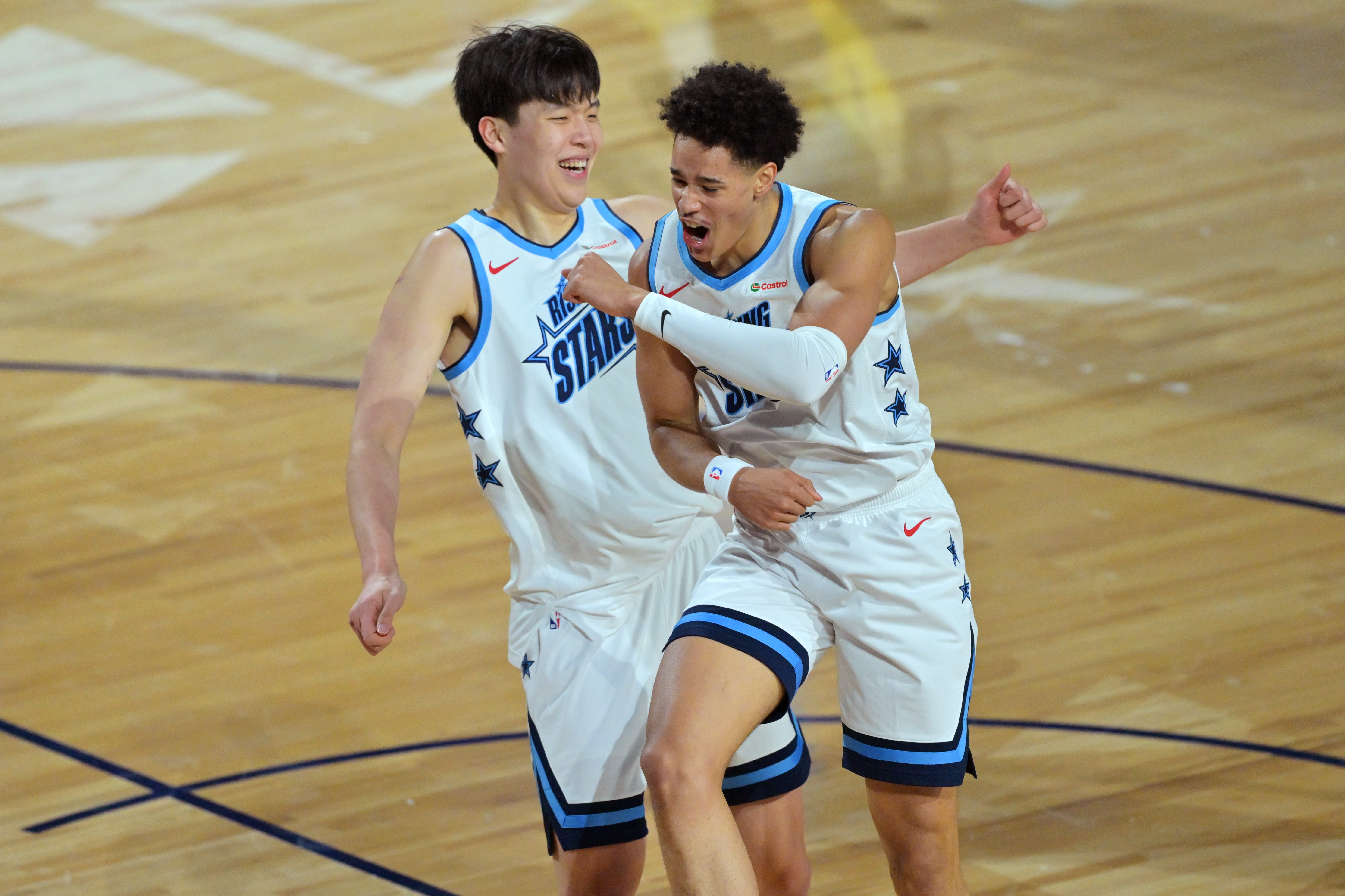 直播吧2月14日讯 今天全明星新秀赛,杨瀚森所在的里弗斯队34-40不敌安东尼队。