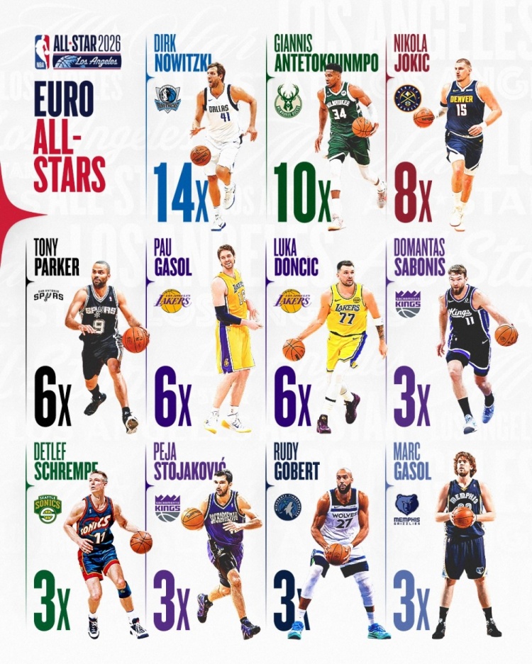 一共23人!历史上入选过全明星的欧洲球员 诺维茨基14次入选最多