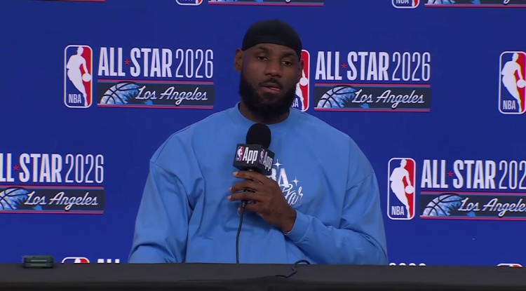 直播吧2月16日讯 今日,湖人球星詹姆斯举行了全明星新闻发布会。