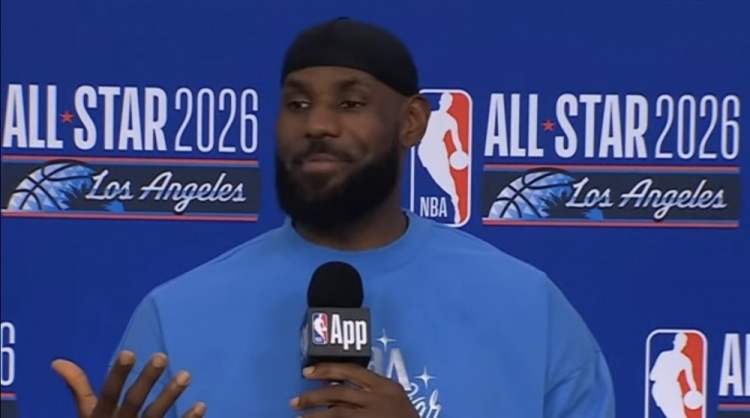 直播吧2月16日讯 今日,湖人球星詹姆斯举行了全明星新闻发布会。