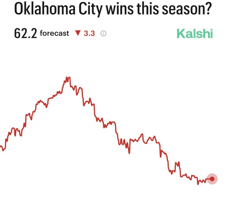 此外,Evan Sidery还晒出了对雷霆总胜场数的预测趋势(见下图)。