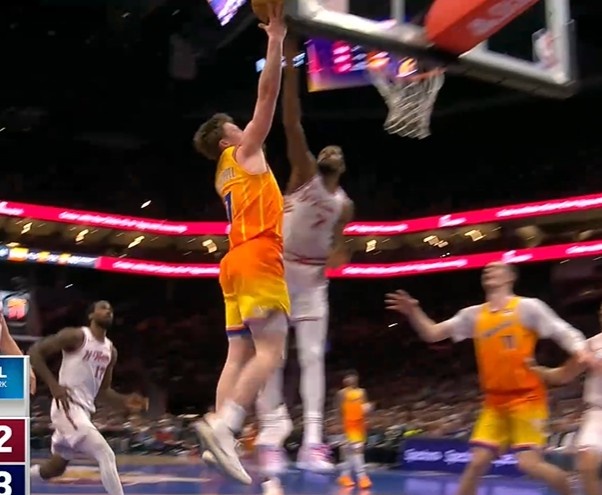 >能持球的克莱?克尼佩尔反击一条龙 变向穿越两人上篮打停火箭