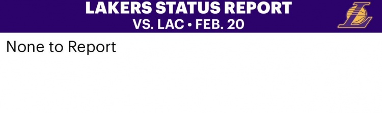 直播吧2月20日讯 今日,湖人官方发布明日比赛的伤病报告:无人受伤。
