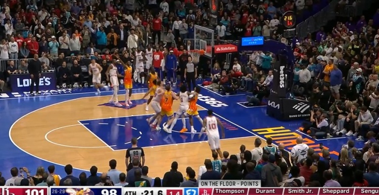 >杀死比赛?杜兰特关键中距离得分 火箭领先到5分