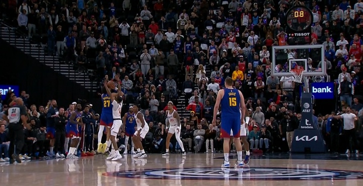 快船与掘金比赛最后时刻,落后3分的掘金获得压哨三分。