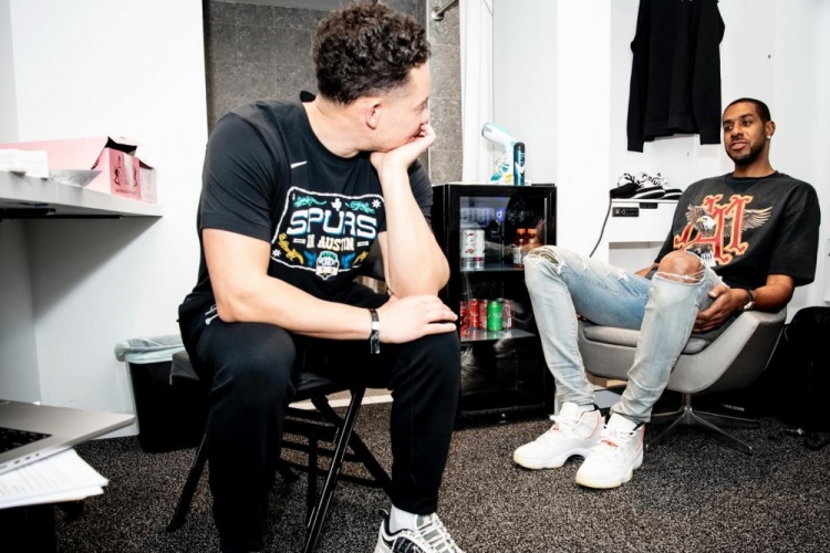>名宿探班!阿尔德里奇昨日造访马刺更衣室 晒出与文班同框照