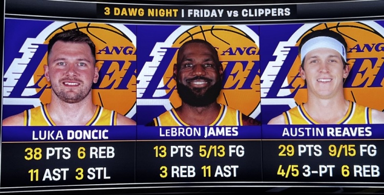 本赛季至今的55场比赛,东契奇、詹姆斯和里夫斯共同出战了其中11场比赛,战绩为8胜3负。