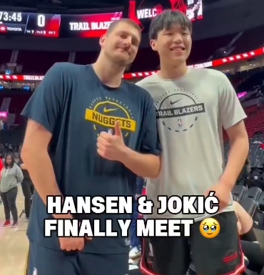 本场比赛,杨瀚森终于见到了自己的偶像约基奇,两人相谈甚欢。