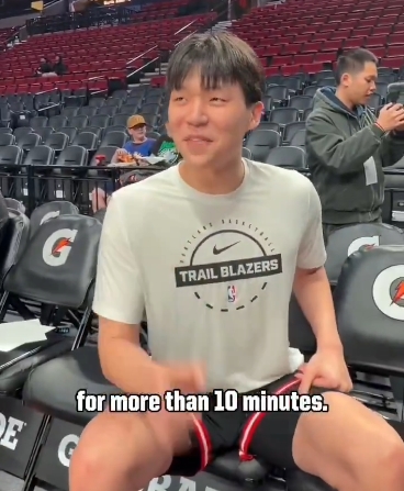 合影结束后,杨瀚森被问到与偶像聊天的感受,他表示:“非常开心,我练了十几分钟的英语,全用上了。”