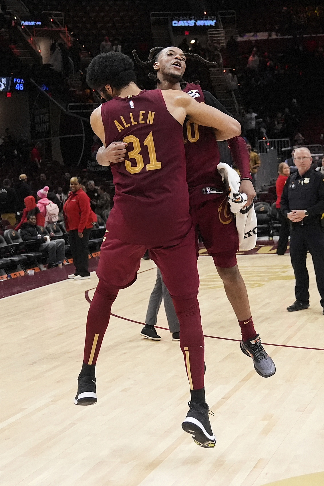 主持人:“贾勒特・阿伦有一句特别棒的话,他说,‘和哈登一起打球太开心了,每一次挡拆,他都能精准找到我。’”