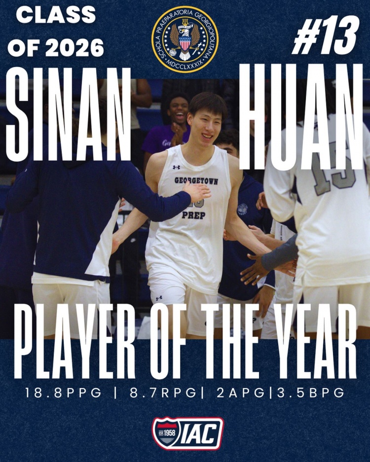 直播吧2月21日讯 郇斯楠所在球队Georgetown Prep Basketball官宣, 郇斯楠当选了所在IAC(洲际体育联盟)的年度最佳球员。