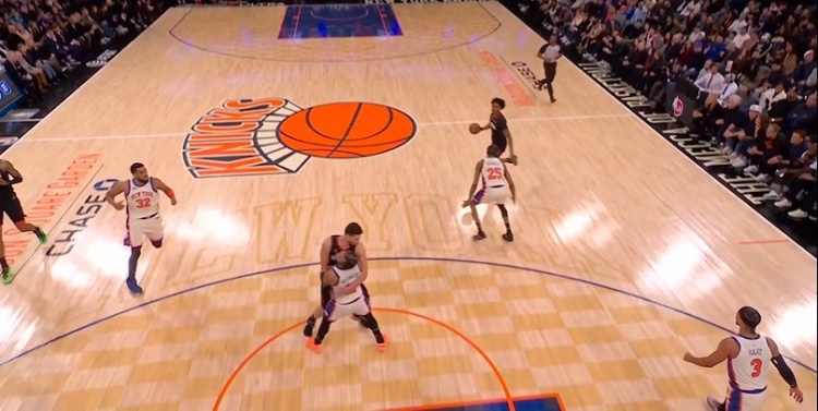 站得很稳!布伦森罚球线站位被申京撞倒吃到犯规 尼克斯挑战成功