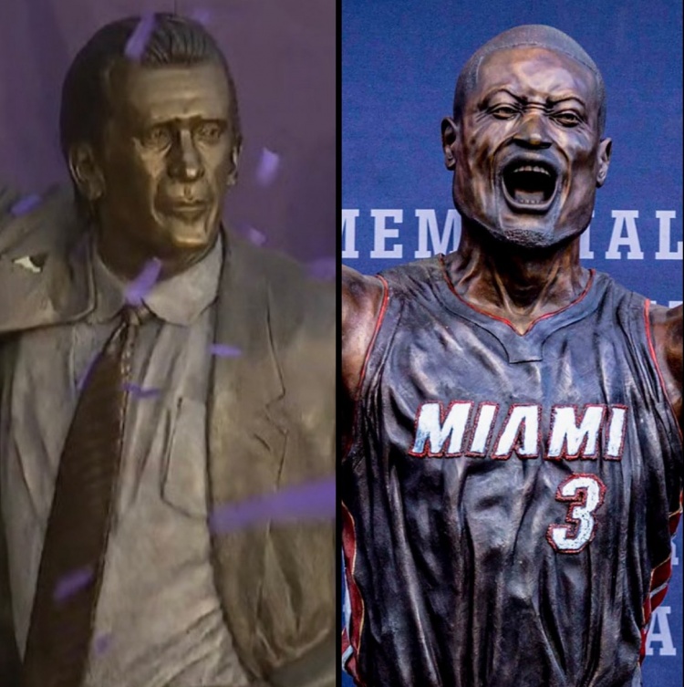 两代热火传奇!莱利与韦德雕像细节对比 哪一座更有神韵?