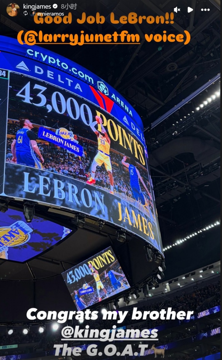 在本场比赛中,詹姆斯常规赛生涯总得分突破43000里程碑,赛后他转发了个人海报勉励。