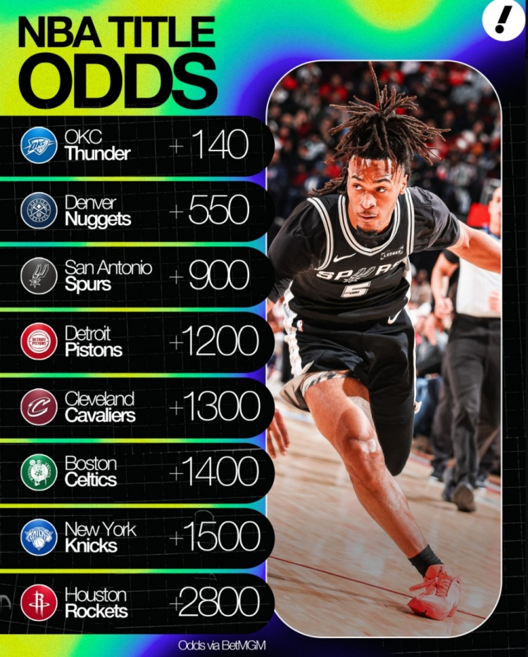 本赛季夺冠赔率:雷霆+140断档第一 掘金马刺列二三 骑士五火箭八
