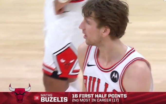 上半场比赛,公牛前锋布泽利斯扛起球队进攻大旗,进攻端里突外投效率不错,他出战18分钟,12中7,三分6中2拿到16分4篮板1抢断。