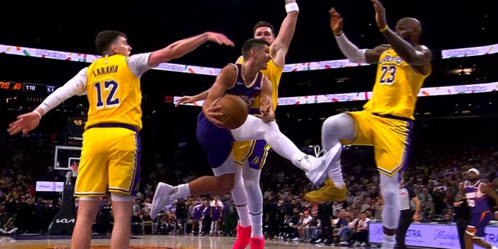 >谁的问题大?东契奇被过半个身位 詹姆斯过来协防撞得人仰马翻!