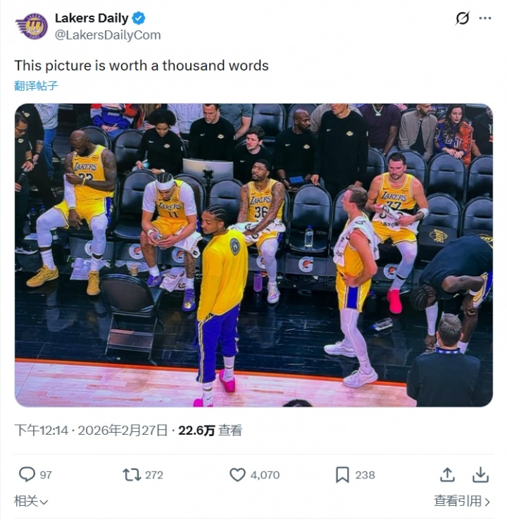 >😕湖媒晒东契奇詹姆斯板凳席视角:这一张图胜过千言万语