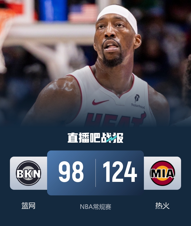 直播吧3月4日讯 NBA常规赛,热火今日迎战篮网,前者上场比赛战胜火箭,后者则是遭遇八连败,此役鲍威尔、约维奇、杰明和新秀鲍威尔等人缺战。