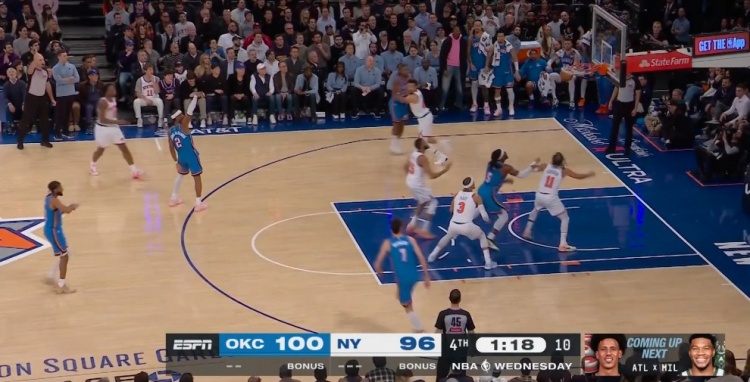 准备收比赛!亚历山大弧顶命中关键三分 雷霆领先7分