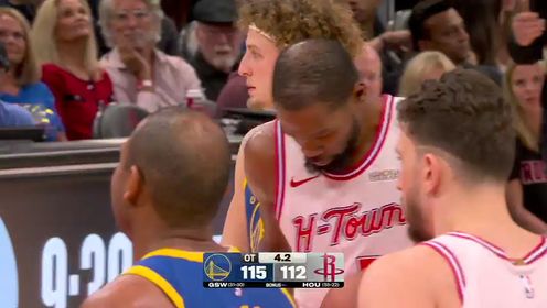 比赛开始,勇士反客为主率先发力,内外开花占据场上主动,申京攻防两端表现不佳,杜兰特连续单打止住颓势,勇士越战越勇逐渐将优势扩大到两位数,次节勇士命中率下降,奥科吉和杜兰特相继飙中三分帮助火箭打出12-2的攻击波扳平比分,桑托斯连续追打谢泼德稳住局势,半场战罢火箭47-51落后勇士。易边再战,勇士占得先机再获两位数领先,火箭外线开炮连中3记三分完成反超,末节两队依旧打得难解难分,关键时刻梅尔顿和霍福德相继飙中三分,申京独得7分给出回应,杜兰特被吹犯规火箭挑战成功,两队常规时间均未能完成绝杀,双方进入加时。加时赛,谢泼德和克赖尔对飙三分,波杰姆斯基连得5分率队确立优势,杜兰特连投带罚拿到5分续命,但也连续错失关键罚球,梅尔顿补篮得手,时间仅剩0.1秒时追梦发球送给杜兰特!最终,勇士加时115-113力克火箭,客场过关。