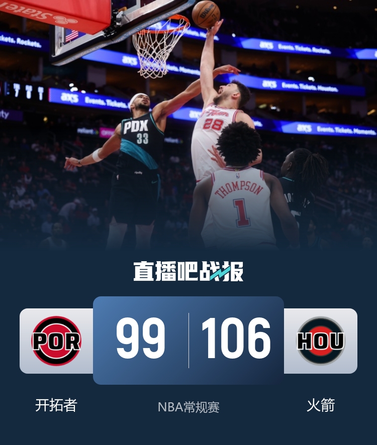 火箭(39-23):申京28分6板2助、阿门26分7板7助2断、杜兰特20分8板5助、谢泼德17分3板6助3帽、芬尼-史密斯5分5板2助、伊森5分5板2断3帽、霍勒迪3分3板、卡佩拉2分6板、奥科吉1板1助。