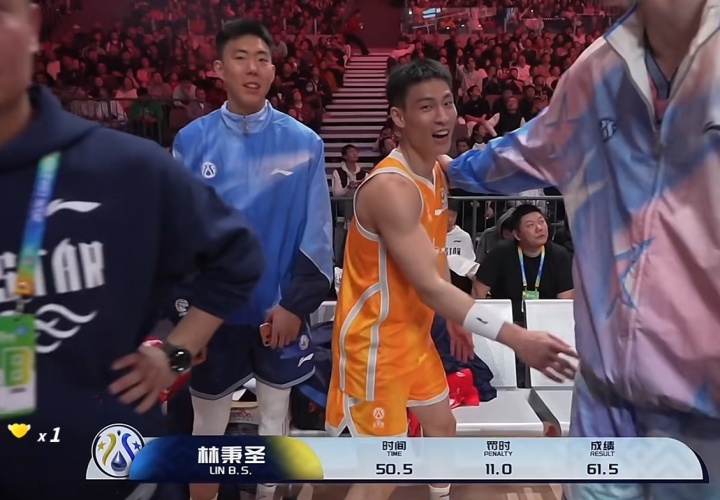 第三个出战的是林秉圣,被罚了11秒,最终成绩61.5秒;