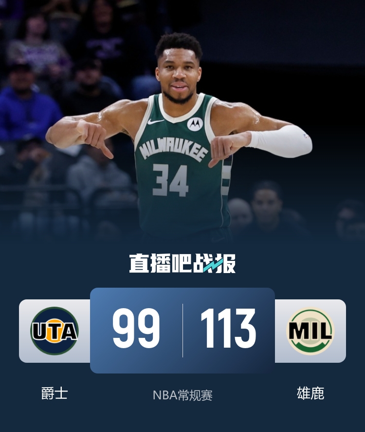 比赛上来,雄鹿先拿6分取得领先,随后就将分差迅速拉开到两位数,虽然他们在首节最后四分多钟时间里只拿到1分,但爵士同样难以得分,次节初段字母哥继续休息,爵士一波攻势追到仅剩2分,不过他们并没能完成反超,半场结束时雄鹿仍领先7分;下半场回来,爵士虽然继续反扑并一度完成反超,好在是雄鹿及时调整给出回应,末节雄鹿将分差再次拉开后爵士又是连拿9分追上,关键时刻库兹马和字母哥连续冲筐有得分保障,最终雄鹿力克爵士止住四连败。
