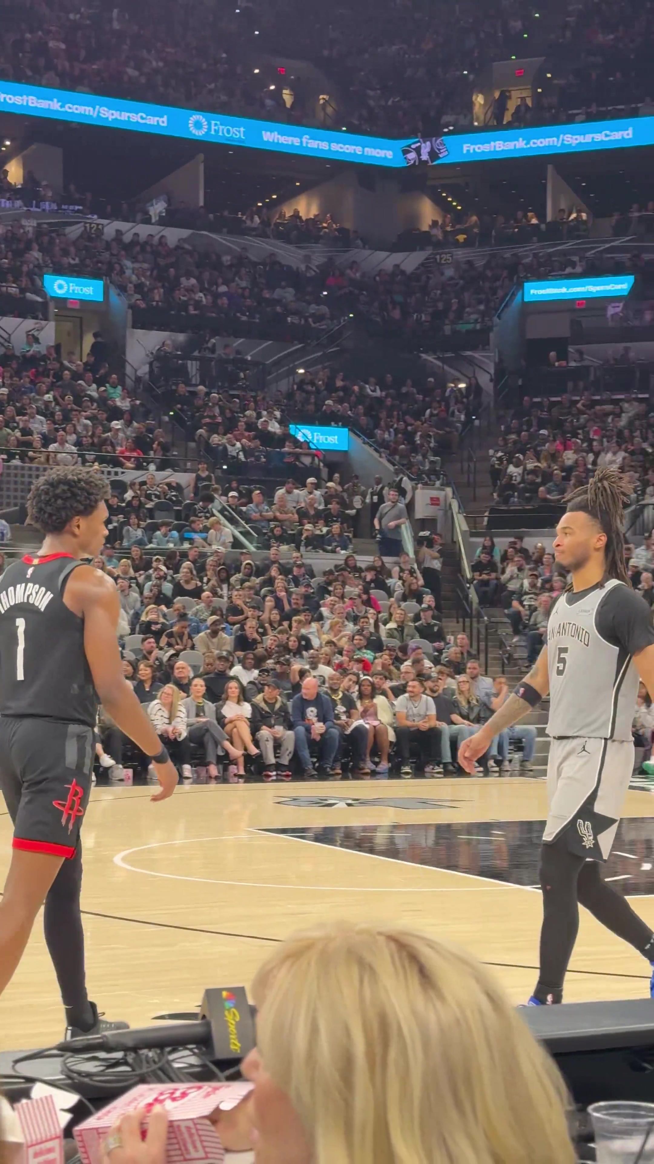 比赛当中,火箭球员阿门死死贴防马刺后卫卡斯尔,对手与主帅米奇沟通时,阿门也在旁边,并且不忘与卡斯尔交流一波。