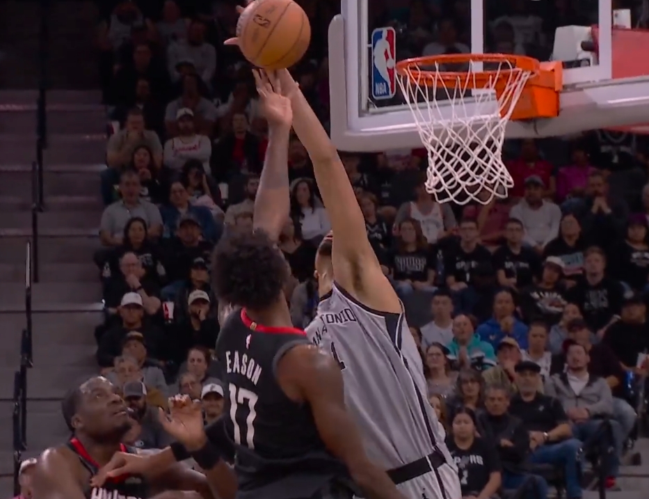 >太变态了!文班右手还和卡佩拉卡着位 突然暴起左手鹰爪血帽伊森