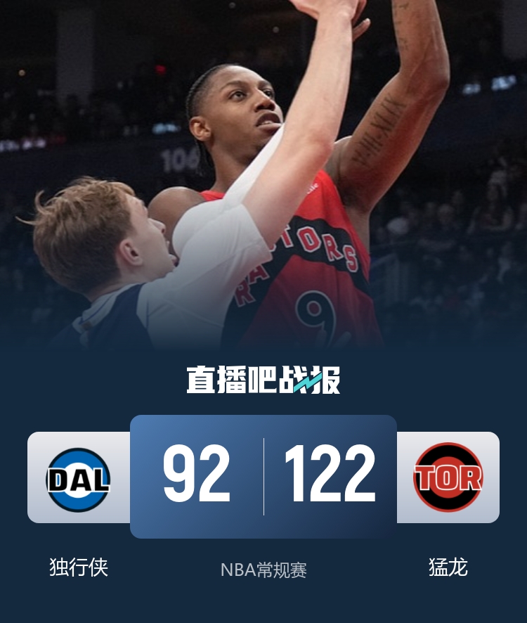 直播吧3月9日讯 NBA常规赛,猛龙今日迎战独行侠,前者近来两连败,后者则是六连败,此役博伊尔斯、欧文和莱夫利等人缺战。