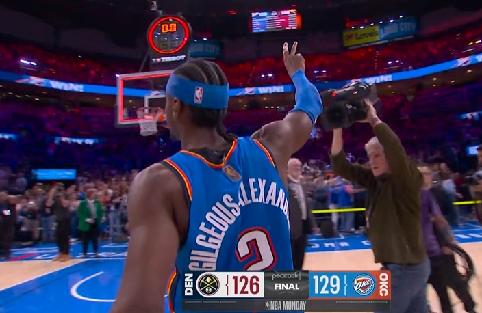 比赛最后时刻,亚历山大先是打进一个关键三分,帮助雷霆领先4分,随后掘金极限3+1(约基奇三分,穆雷罚球)扳平比分。