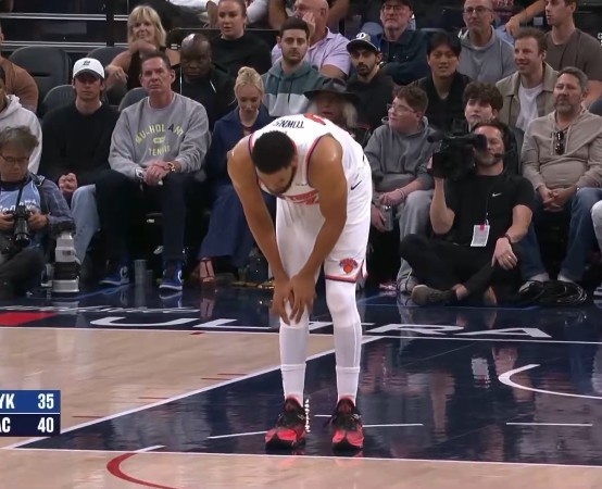 >希望无大碍!唐斯强突大洛左手上篮不中 随后捂着膝盖不舒服