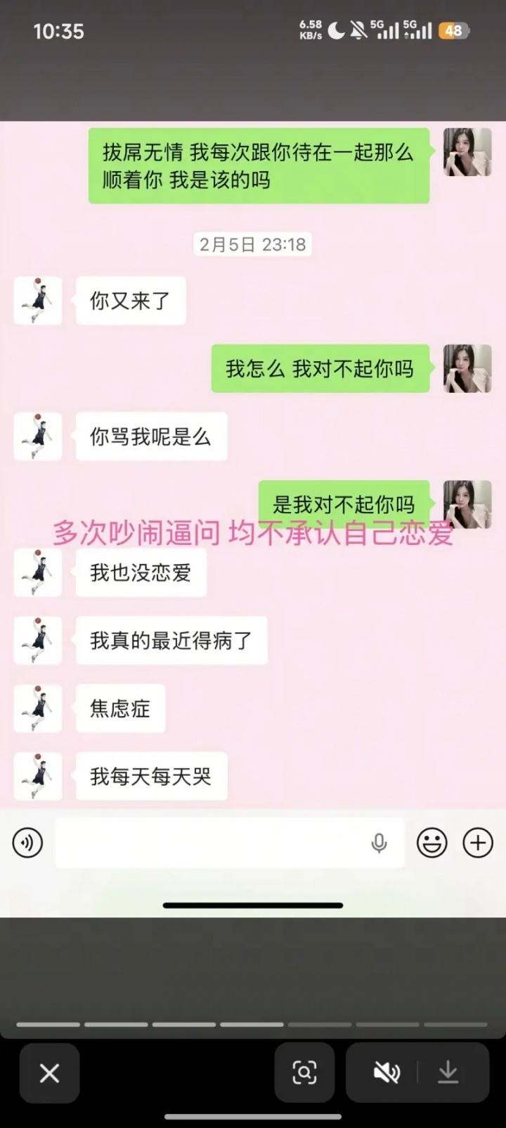 ZW晒聊天记录,控诉郭昊文在她发抖音之后终于承认自己有女友,郭昊文还称自己得了焦虑症,“每天每天哭”。