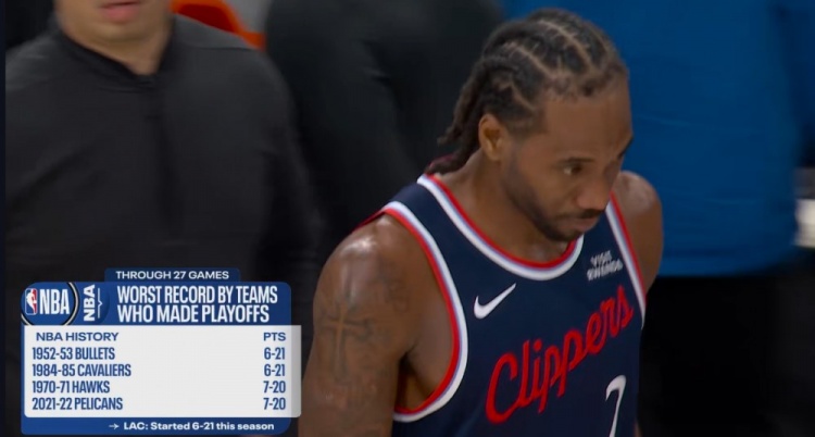 >第三支?历史上有两支球队前27场6胜21负杀入季后赛 快船开赛6-21