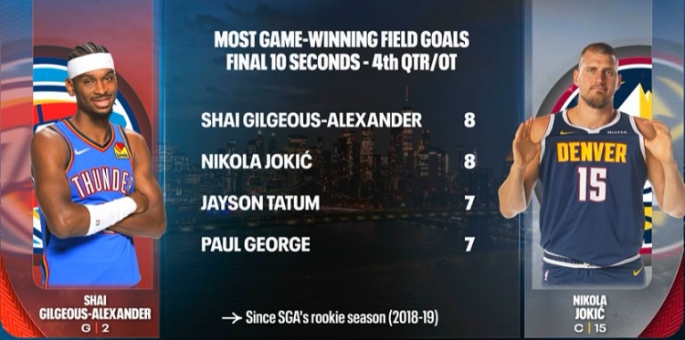亚历山大自进联盟以来第8次在最后10秒投进制胜球 同期最多