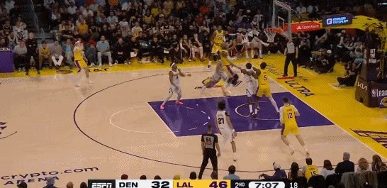 一马平川!詹姆斯反击接球 中路突进起飞拉杆上篮轻松得手