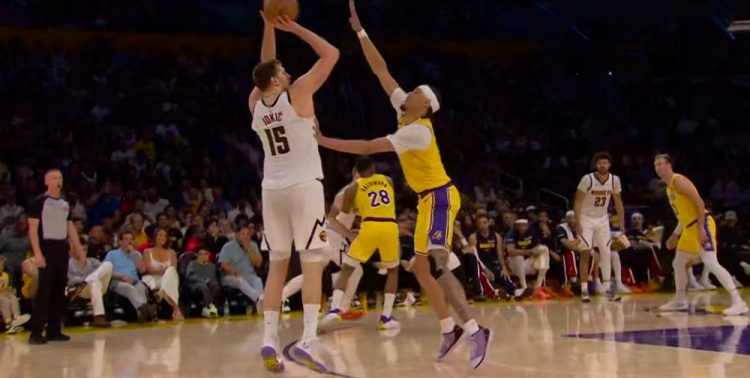士气大振!约基奇弧顶开炮 三分命中并造海斯犯规加罚也有