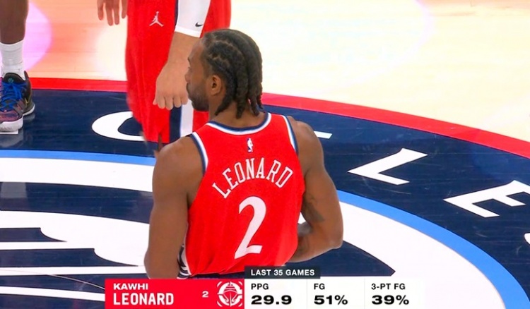 >战神!伦纳德近35场比赛场均29.9分 投篮命中率51%&三分命中率39%
