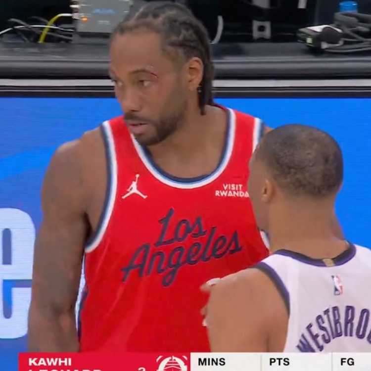 快船VS国王,伦纳德眼角被打破血流不止,回更衣室治疗后目前已经返场。