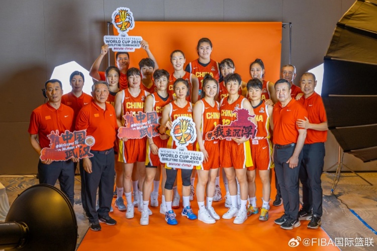 赛后,FIBA官博晒出了中国女篮成员庆祝晋级世界杯正赛的合影。
