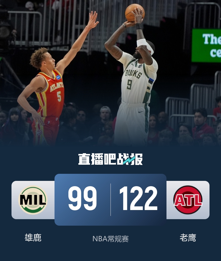 直播吧3月15日讯 NBA常规赛,老鹰坐镇主场迎战雄鹿,此前老鹰35胜31负位列东部第9,雄鹿则是27胜38负排名东部第11。此役字母哥缺阵。