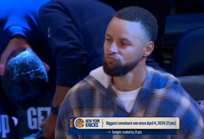 有点难受啊!勇士最后一攻失误 场边的库里无奈噘嘴