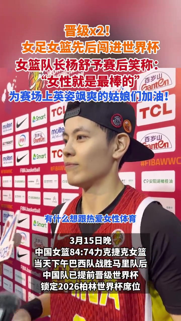 >女篮女足均晋级世界杯!杨舒予to热爱体育的女性:女性就是最棒的
