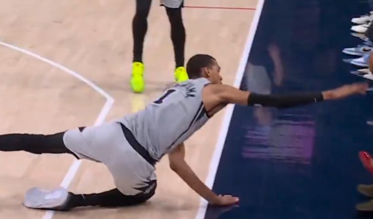 真拼啊!文班从罚球线内飞扑到边线试图完成救球 摔到观众席