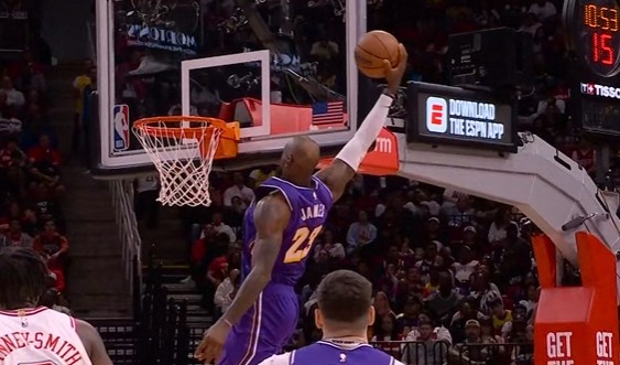 比赛中詹姆斯上演惊人的6次扣篮,一起来回顾一下吧: