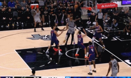 >翻江倒海!文班亚马冲击内线强攻不中 随后起飞单臂补扣