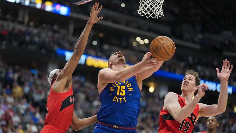 直播吧3月21日讯 NBA常规赛,掘金主场对阵猛龙。掘金42胜28负西部第6,猛龙39胜29负东部第5。