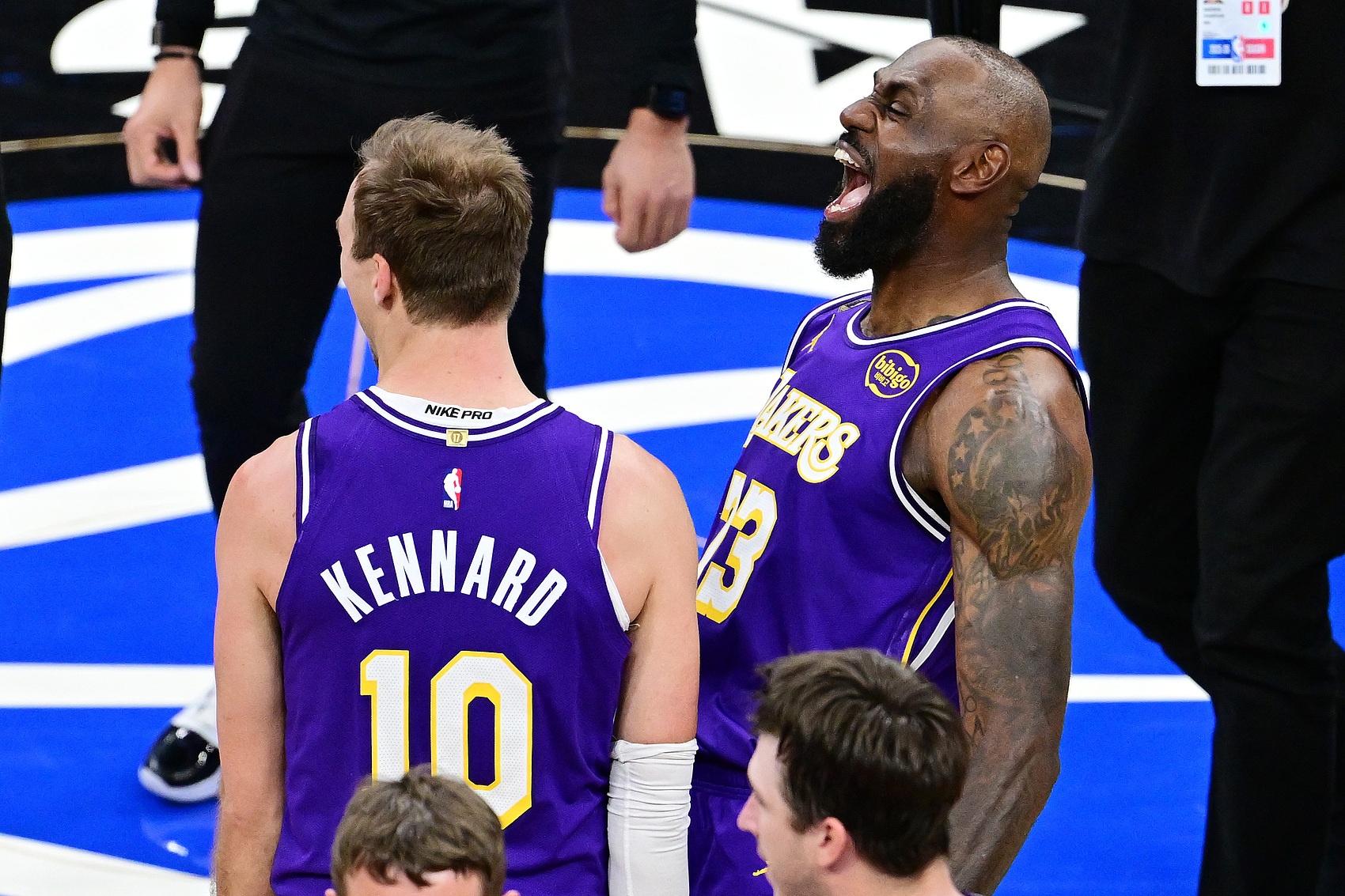 当被问到他看到肯纳德出手最后绝杀三分时的想法,詹姆斯说:“当我转身看到球在卢克的手里,他出手了一记大空位三分,我差不多预感到那球要进了。不过,你当然需要看着球穿越篮网。当然,我在球进之后有很快的反应,我知道他们没有暂停了,所以我们必须回防,只要举起手干扰一下投篮。我记得是卢卡(东契奇)还是AR(里夫斯)去防了萨格斯,我们最终赢下了比赛。”